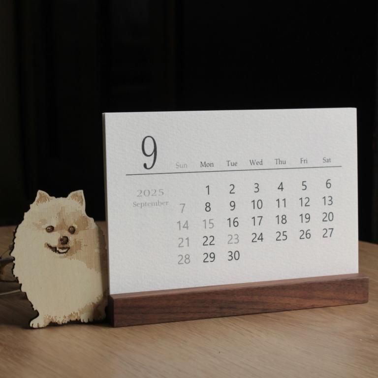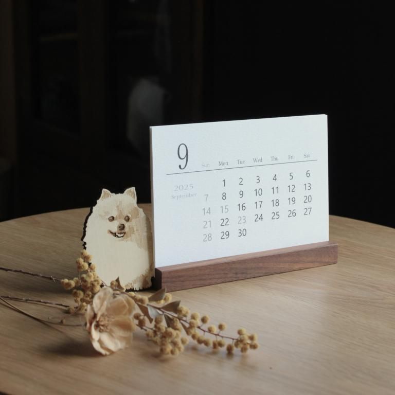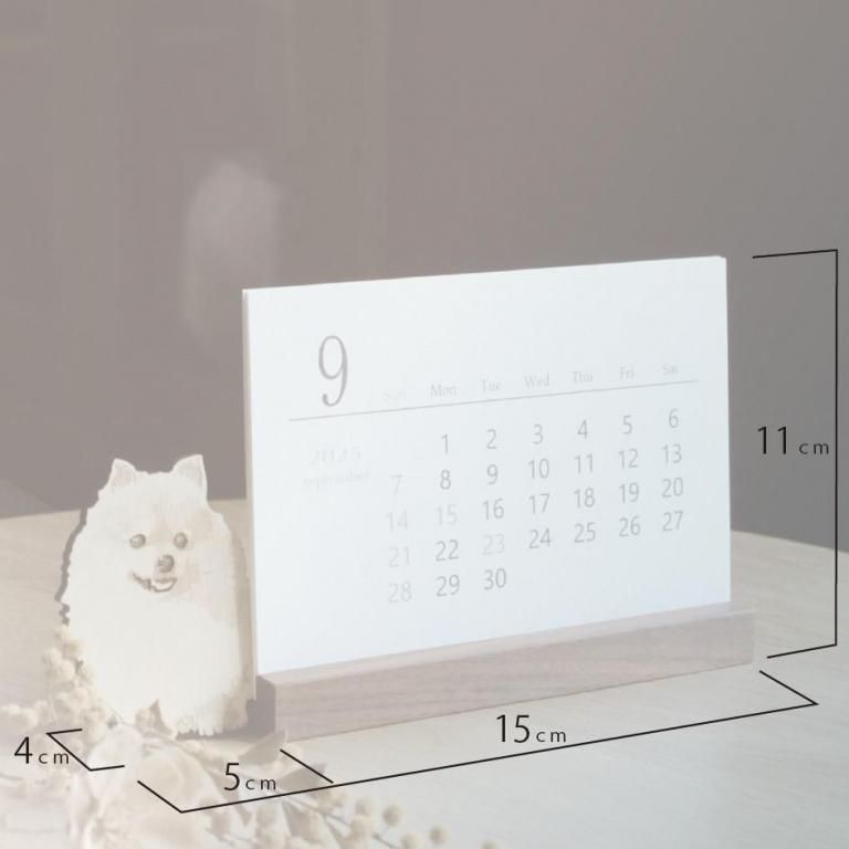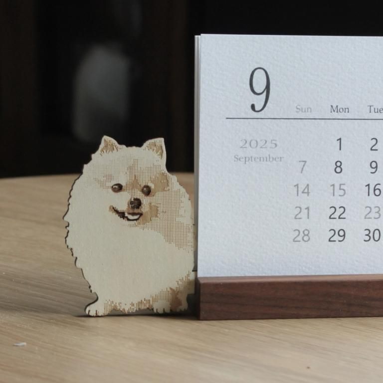 2025年〜2026年 ポメラニアン 木製スタンド付き卓上カレンダー