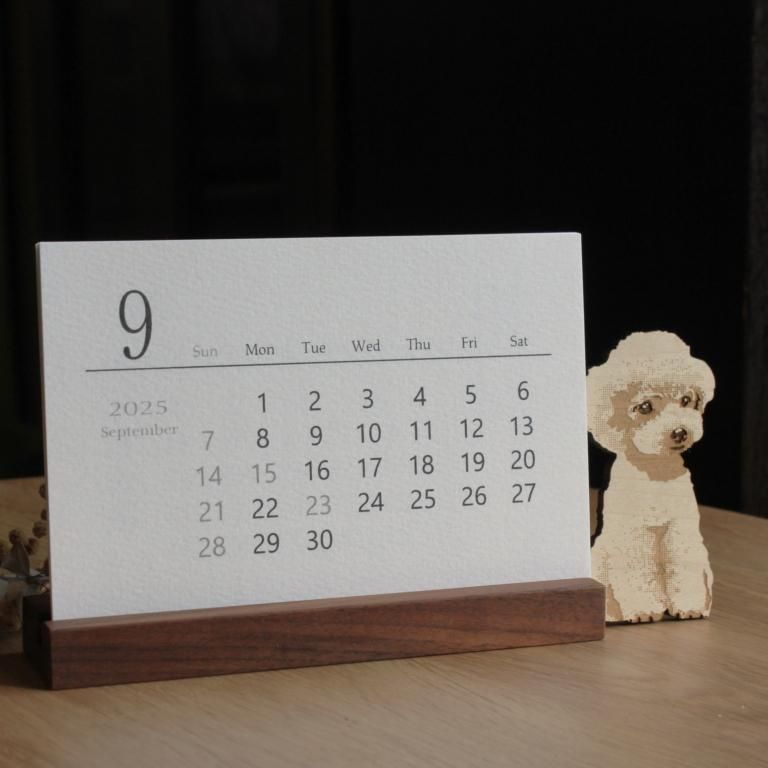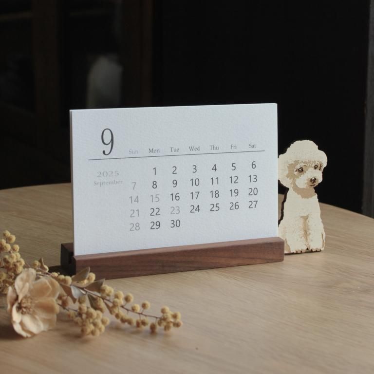 2025年〜2026年 トイプードル 木製スタンド付き卓上カレンダー