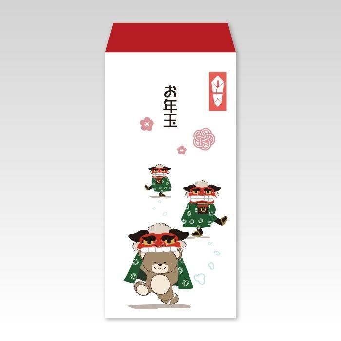 【2026年お年玉袋】くまちゃんの獅子舞(大)/3枚【上質製ポチ袋】