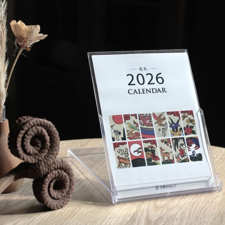 「2026年【花札】卓上カレンダー|限定100個生産 ポストカード付属」は京都かみんぐ本店のお店、他ネットショップにて販売しております。数量限定100個のみの生産となっておりますのですでに売り切れている場合がございます。ご了承ください。